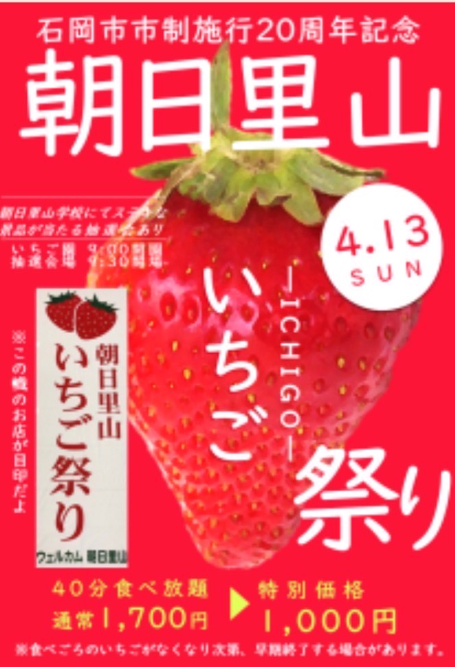 🍓🍓4/13(日)朝日里山いちご祭りが開催されます🍓🍓